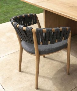 CARLOS Dining Armchair is the perfect solution for enhancing your living area in the garden. The solid teak wood structure embraces the large and comfortable seat. made of wood, padded seat with fabric covering, available in different finishes.