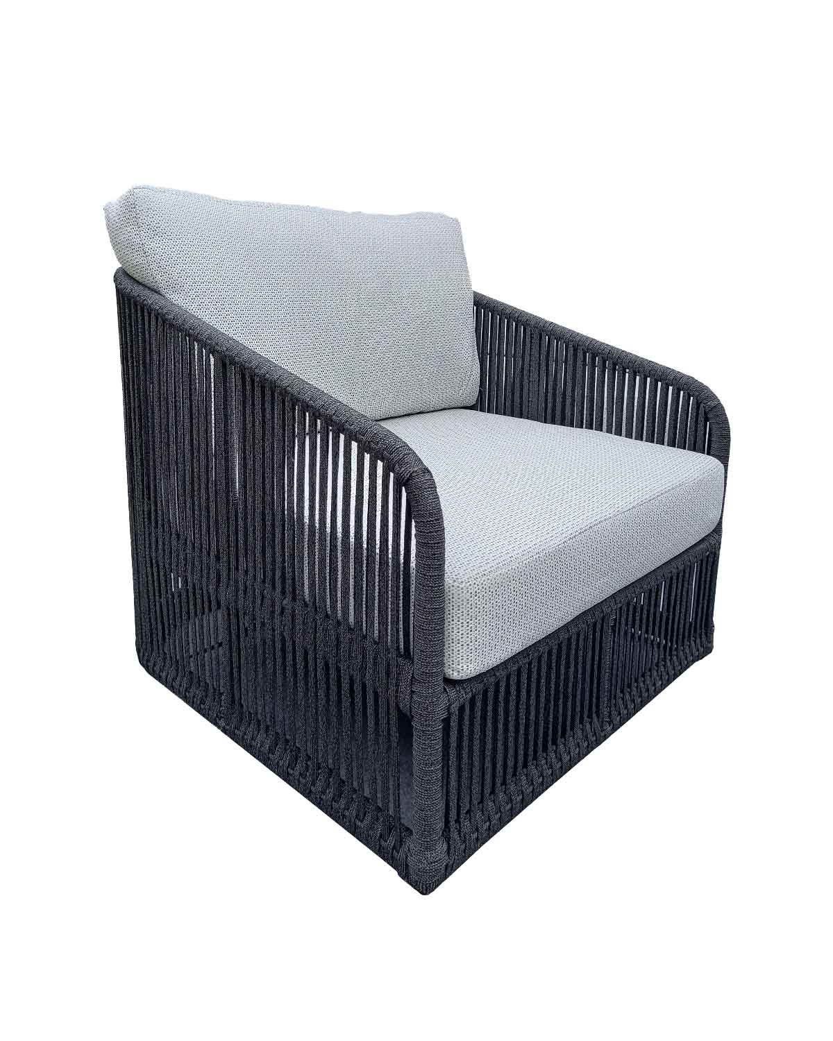 FANNY Lounge Chair is the perfect solution for enhancing your living area in the garden. made of aluminium frame with rope weave, padded seat with fabric covering, available in different finishes.