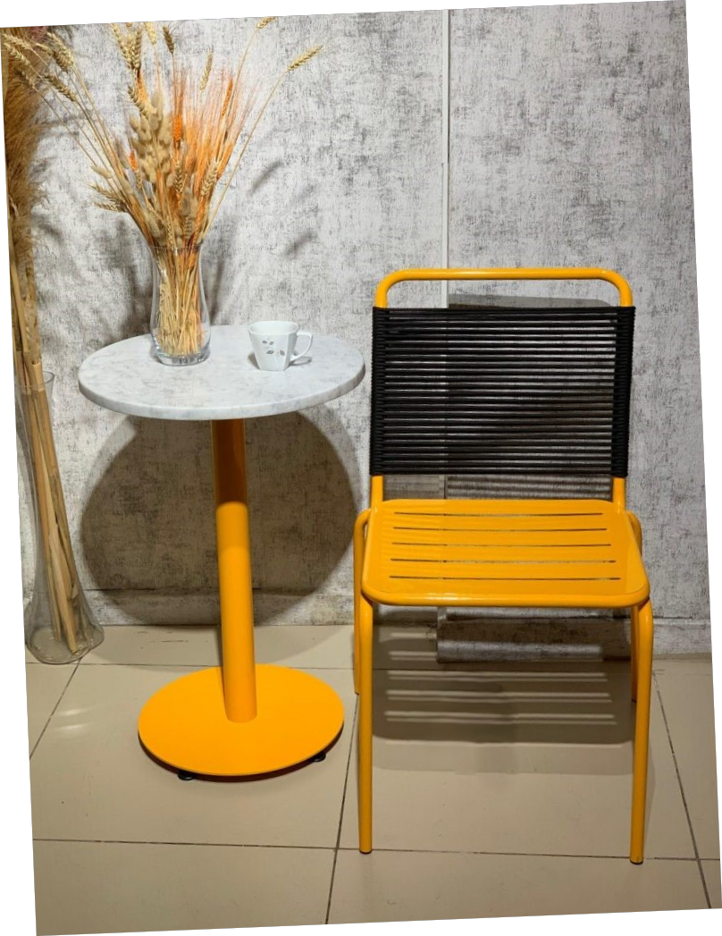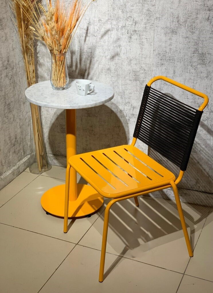 FLAYER Dining Chair, made of metal frame combine with outdoor rope weaving. Suitable for indoor or outdoor application.