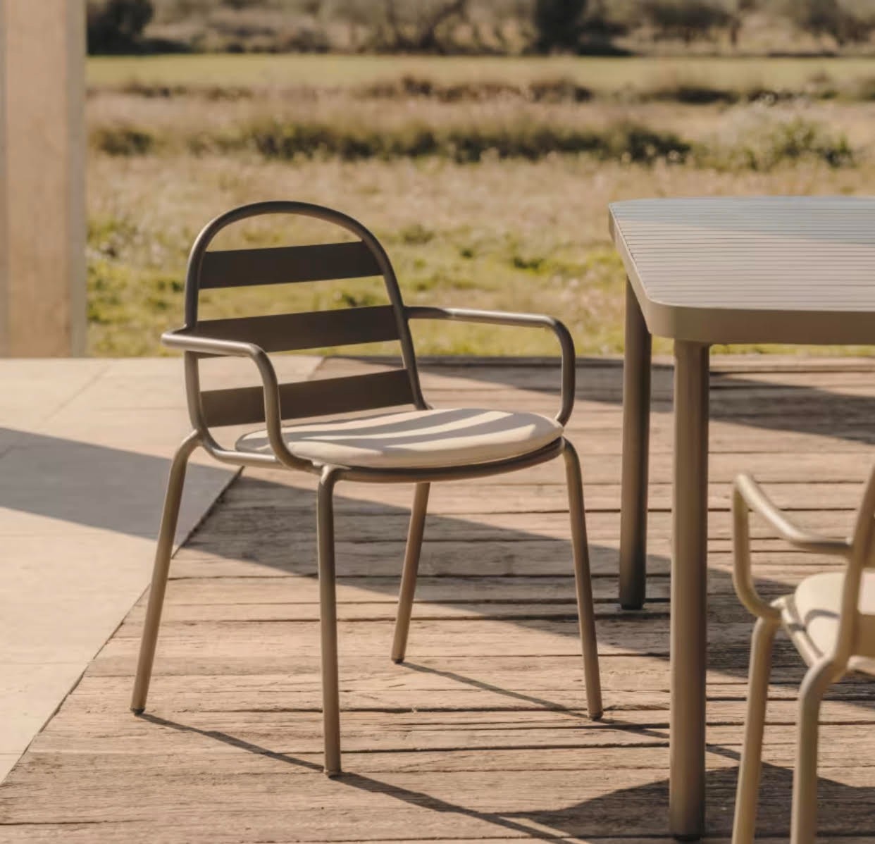 LUMDO Outdoor Dining Chair, made of metal frame combine with outdoor fabric cushion. Suitable for indoor or outdoor application.
